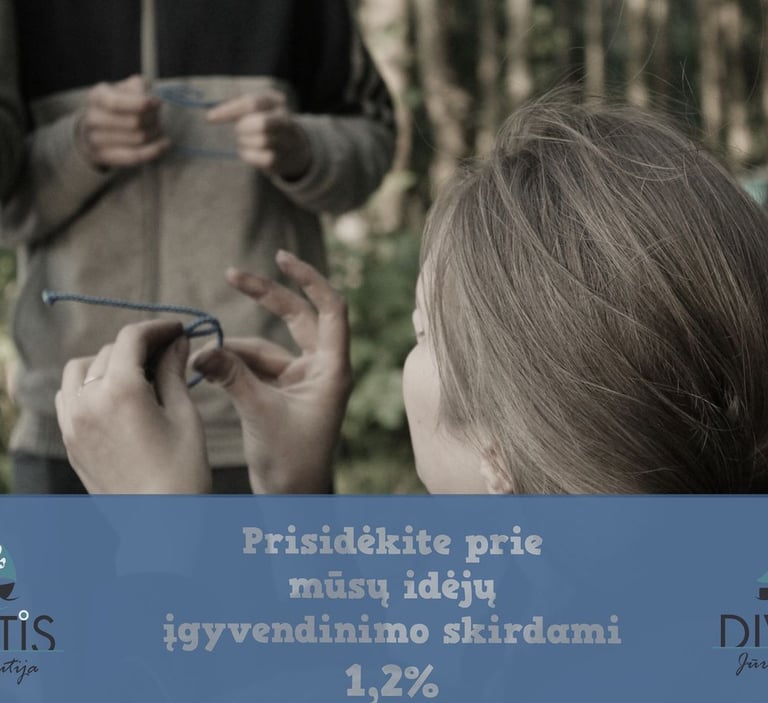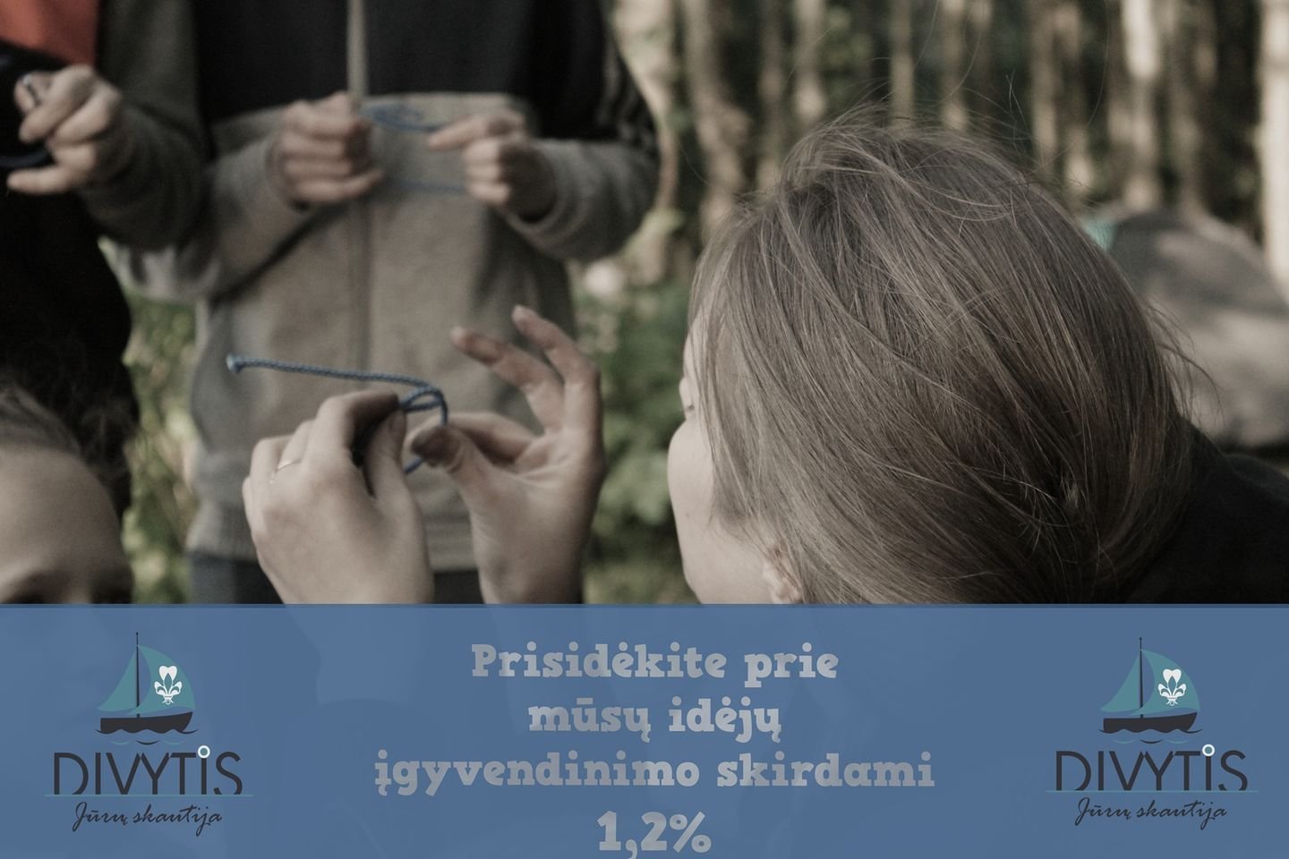 Mes Jus kviečiame mūsų organizacijai skirti 1,2% savo pajamų mokesčio. Taip prisidėsite prie kokybiškesnių stovyklų ir kitų renginių organizavimo ir suteikdami galimybę ne tik teoriškai papildyti žinių bagažą, bet tobulėti ir praktiškai